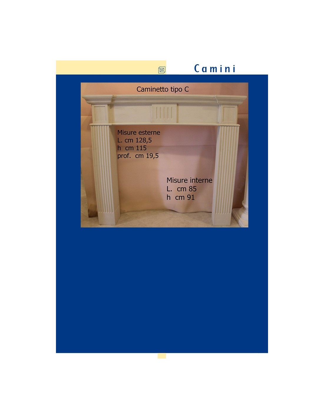 CAMINETTO IN GESSO CERAMIZZATO ART.C  L.cm.128 x h.115 x p.19,5